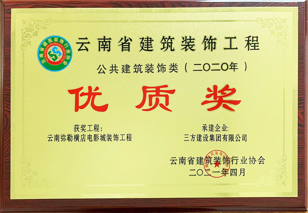 热烈庆祝集团荣获2020年度云南省 建筑装饰星空官方站网站-星空(中国)公共建筑装饰类“优质奖”