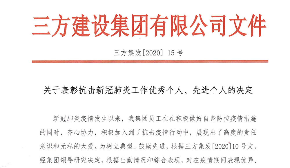 表彰|集团抗击新冠肺炎工作优秀个人、先进个人的决定