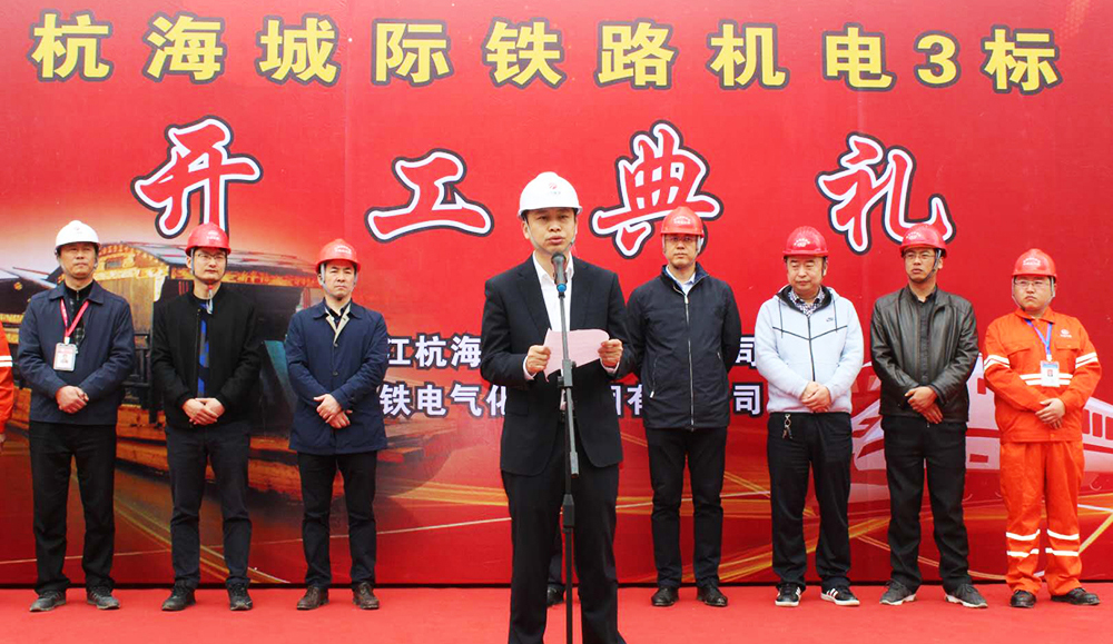 杭海城际铁路正线成功组立接触网第一杆
