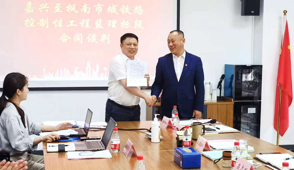 董事长参加嘉兴至枫南市域铁路控制性节点星空官方站网站-星空(中国)(嘉兴南站) 监理合同谈判会
