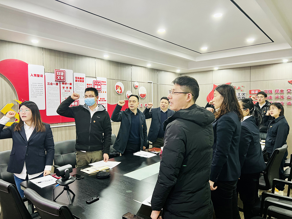 会议伊始,党员们举起右手,铿锵有力地重温入党誓词,重忆入党初心。
