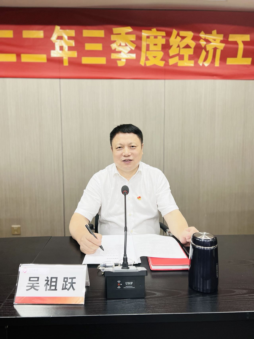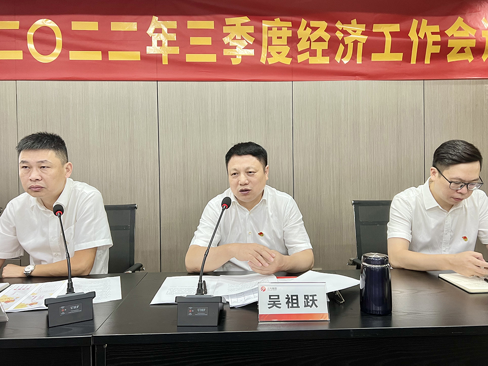 9月16日下午,集团在总部会议室召开2022年三季度经济工作会议,总结三季度集团经济工作完成情况,明确集团全年的营收目标,布置四季度及今后一年的工作目标。会议由集团总裁夏少云主持,董事长吴祖跃,副总裁郑燊、杨超等集团领导出席。