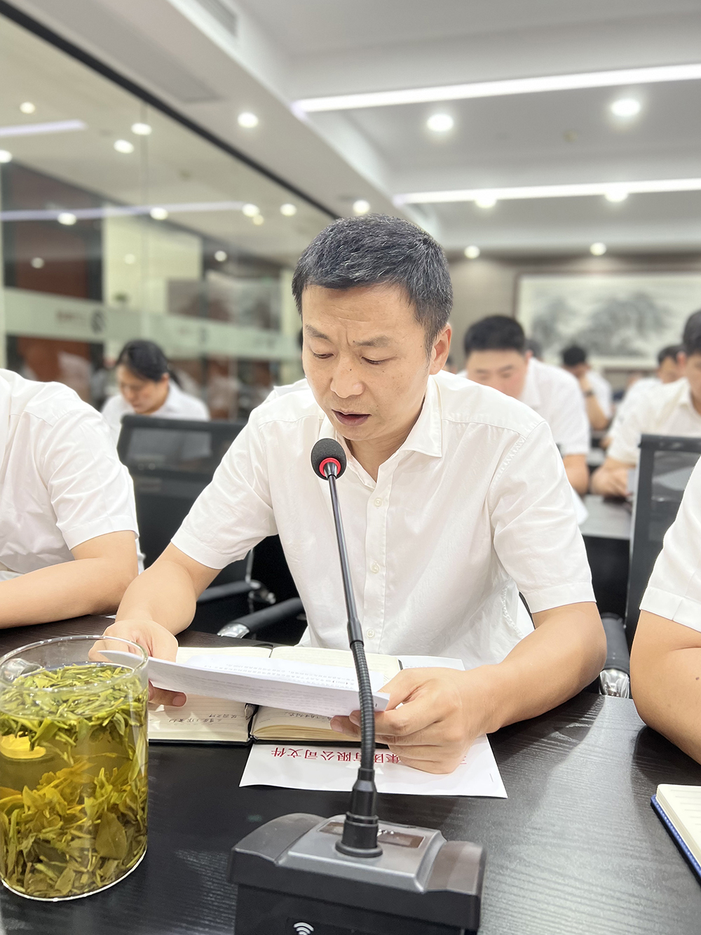 集团财务总监陈健力通报了各项目截止8月31日的收支情况,集团总裁夏少云布置了收款计划,压实责任,落实到人。