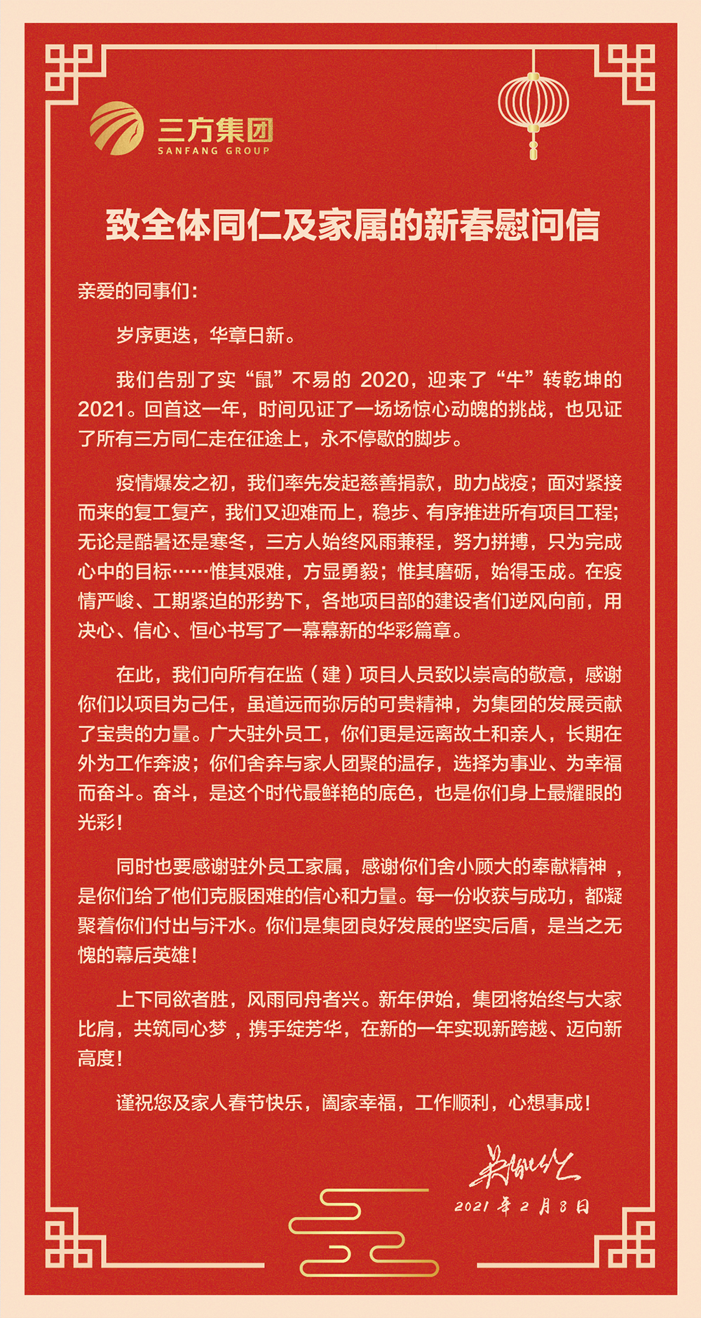 致全体同仁及家属的新春慰问信