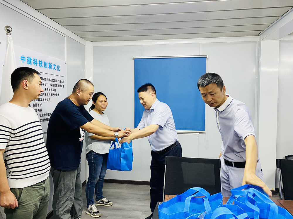 入伏以来,杭州连日处于“高温模式”,炎炎烈日给辛苦奋战在一线的员工们带来了不小的挑战。为做好高温季节防暑降温工作,切实保障集团员工安全健康、确保企业各项经营正常开展,7月16日上午,集团董事长吴祖跃、总工王鹏飞一行赴凯旋单元14地块公租房项目部亲切慰问基层一线员工。一行人向在岗同志发放防暑降温慰问品,为他们送上了夏日中一份宝贵的“清凉”,同时也送去了集团领导真诚的关怀和问候。