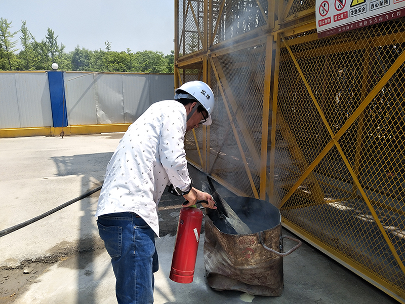 整个演习从发现火情,人员进入现场到灭火、人员疏散,仅用五分钟。演习过程结束后,消防专业人员现场为施工及现场监理、管理人员讲解施工现场用电及防火注意事项,对初期火灾怎样扑救及发生火灾时如何逃生、自救等安全知识进行了现场培训,并现场演示了灭火器的使用方法,组织人员现场体验灭火器的使用。最后消防演习总指挥对此次消防演习进行了总结,宣布消防演习圆满结束。