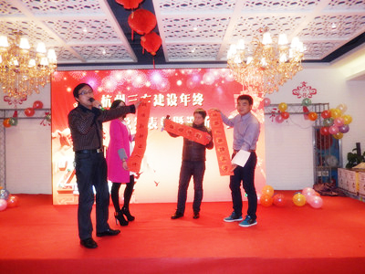 会议结束后,公司全体员工参加了公司新春团拜宴会,各位领导同全体员工一同会餐,共同欣赏由员工精心准备的文艺节目,参与抽奖和游戏活动,共同度过了一个喜庆、欢乐的夜晚。