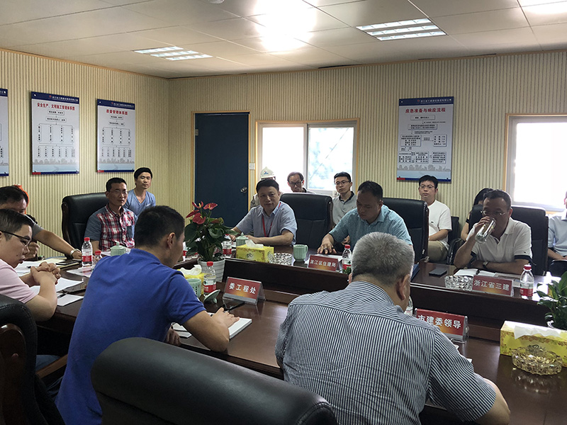 集团董事长吴祖跃受邀出席调研座谈会并陪同市建委领导一行视察了工地施工现场,裘新谷主任对现场的管理及安全文明施工给予了表扬。
