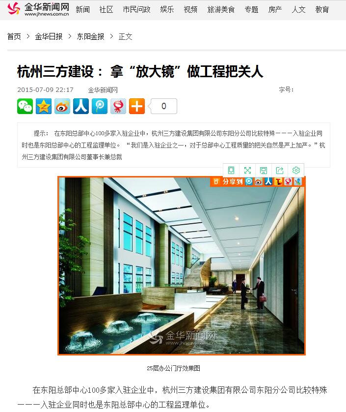 2015年7月8日,集团董事长吴祖跃接受了金华日报社东阳分社叶永永记者的独家采访,吴祖跃董事长就集团东阳分公司自2009年成立以来的发展、分公司5年来的成长如何打造企业品牌、回归家乡创业等方面向东阳人民作了详细的汇报,东阳分公司的发展得益于全体员工视质量、服务为生命,归功于集团对东阳分公司严格要求“拿放大镜做星空官方站网站-星空(中国)质量的把关人。”金华日报和金华外闻网全面刊登了记者的采访。
