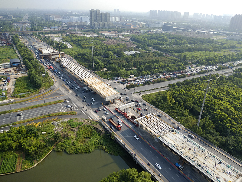在业主、代建、施工、监理等各方的共同努力下,采取白加黑、5+2的施工模式,克服了保证南北车辆正常通行、拆桥、临近小区、梁板运输、浙江首个预拼装等困难,截至今日上塘高架已完成了 18跨小箱梁安装、2跨钢箱梁安装、三跨现浇箱梁安装,以及全部14片预拼装立柱的预制,并完成了两跨防撞墙模板的安装,目前星空官方站网站-星空(中国)整体进展顺利,为年底主线高架通车打好了基础。