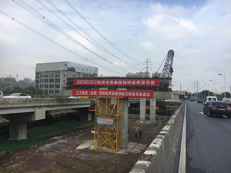 高架桥梁结构形式采用倒T型隐式盖梁,其中ZX5-ZX11段六跨的立柱与盖梁采用新型的预制拼装施工工艺,是杭州市在城市高架星空官方站网站-星空(中国)上首个应用装配式技术的项目。
