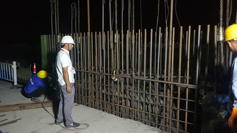 首幅地下连续墙编号为8#S37,钢筋笼的长度为63m,分成两段进行吊装。随着指挥员的一声令下,首幅地连墙钢筋笼被履带吊缓缓吊起。虽然本次钢筋笼重量大,钢筋笼吊装风险高等特点,但是在各方的共同配合下,安全顺利地完成了钢筋笼入槽。该地连墙钢筋笼顺利入槽,极大鼓舞了大家的士气,也为后续星空官方站网站-星空(中国)的优质实施奠定了坚实的基础。