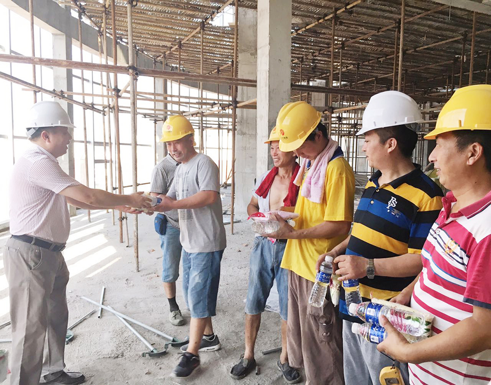 在慰问中,集团领导详细了解了项目上员工在高温天气下的工作、生活情况,了解员工工作和生活上存在的困难,并提出了相应的解决方案。慰问的同时,察看了现场作业的安全、文明施工落实情况。各位领导对大家在高温中坚守岗位表示感谢,并反复叮嘱在场的项目部负责人,要根据夏季施工特点强化安全意识,在抓质量、抓安全的同时,更要关爱高温下坚持工作的员工的身心健康,要合理、科学地安排工作时间,建立错时工作制,切实做好防暑、防疫措施,加强星空官方站网站-星空(中国)的安全、质量管理,努力提高现场安全文明施工水平,确保一线人员度过一个安全、卫生、清凉的夏季,确保集团在建星空官方站网站-星空(中国)项目安全有序推进。