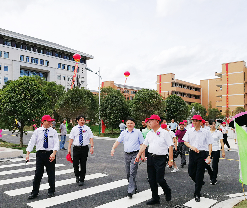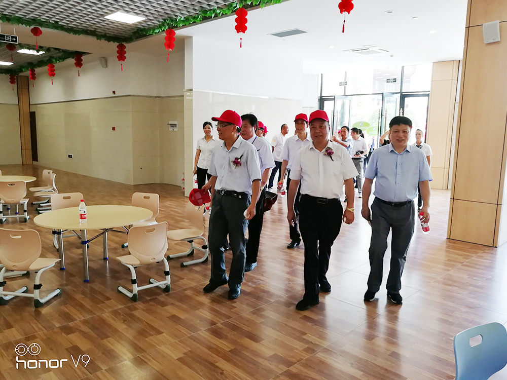 落成典礼后,集团董事长吴祖跃陪同花园集团董事长邵钦祥参观了花园外国语学校