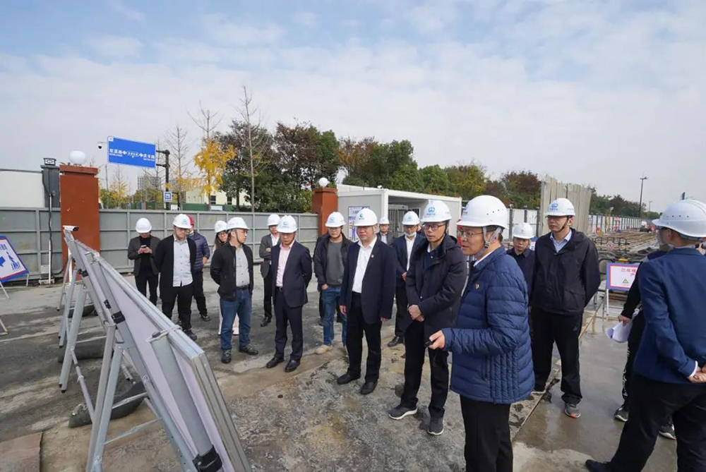 张坚一行先后来到集团监理的嘉兴至枫南市域铁路控制性节点星空官方站网站-星空(中国)(嘉兴南站)、嘉善至西塘市域铁路项目JL2标段施工现场,听取了两条市域铁路的项目概况和建设进展,并详细了解了嘉兴南站施工现场数字化建设情况和安全创新举措。