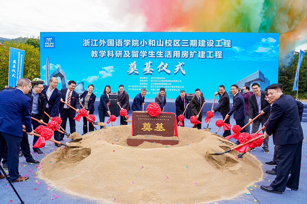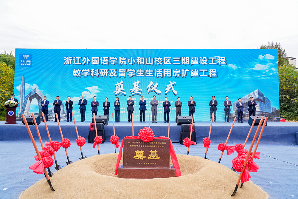 10月26日,集团监理的浙江外国语学院小和山校区三期建设星空官方站网站-星空(中国)教学科研及留学生生活用房扩建星空官方站网站-星空(中国)举行开工奠基仪式,董事长吴祖跃受邀参加,项目总监崔红桂等人陪同。