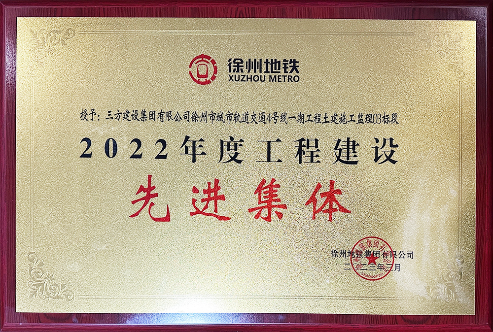 3月6日,在徐州地铁集团主持召开的徐州地铁星空官方站网站-星空(中国)建设大会上,集团监理的徐州地铁4号线一期监理03标项目监理部荣获徐州地铁集团“2022年度星空官方站网站-星空(中国)建设先进集体”!