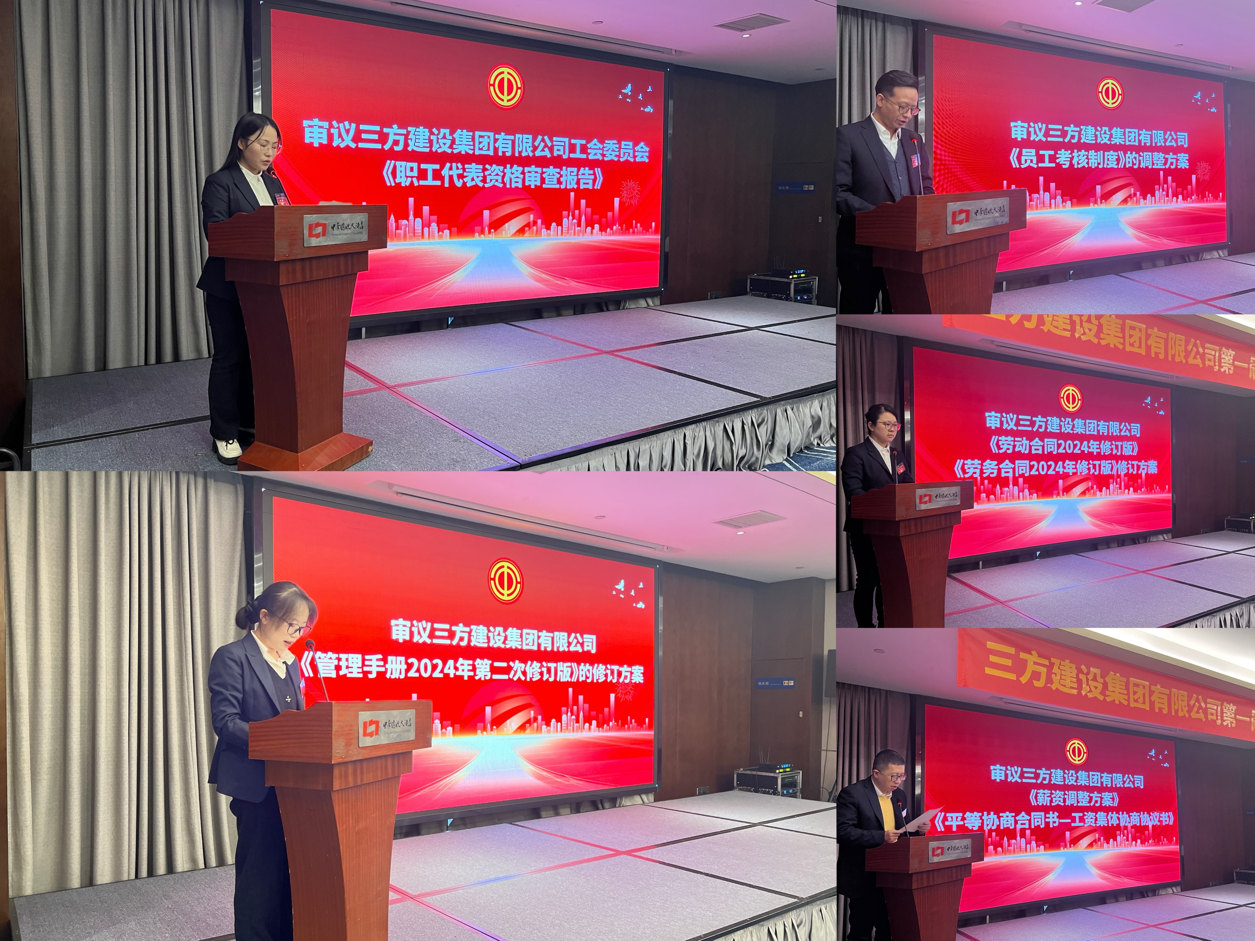 广大职工代表听取并审议了《职工代表资格审查报告》、《管理手册2024年第二次修订版》、《员工考核制度》、《劳动合同2024年修订版》、《劳务合同2024年修订版》、《薪资调整方案》、《平等协商合同书—工资集体协商协议书》等七项议题并表决通过了这七项议题。