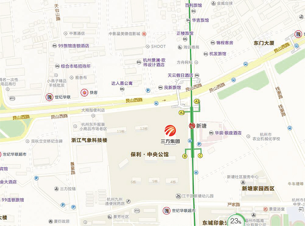 保利中心位于杭州市传统主城核心区域——江干区新塘路艮山路交叉口(原汽车东站地块),系地铁4号线新塘路站上盖物业、杭州首座三银写字楼。项目地上23层、地下2层、建筑高度100米,紧邻杭州交通枢纽火车东站,并同时坐拥周边杭甬高速公路、秋石快速路、艮山快速路等交通资源之便利。