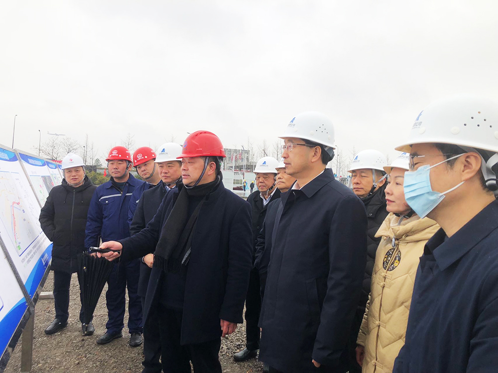 2月9日下午,浙江省常务副省长陈金彪一行赴我集团监理的杭州萧山机场枢纽接线星空官方站网站-星空(中国)先行星空官方站网站-星空(中国)先行标项目进行现场调研。省政府副秘书长周日星,省发改委副主任李军,杭州市政府副秘书长姚吉锋,杭州市发改委一级巡视员、市铁办主任施永林,萧山区委副书记吴炜炜,杭州市交通投资集团有限公司党委书记、董事长章舜年,杭州机场高铁有限公司董事长许敦莲,集团董事长吴祖跃,副总裁杨超及其他参建单位负责人陪同。
