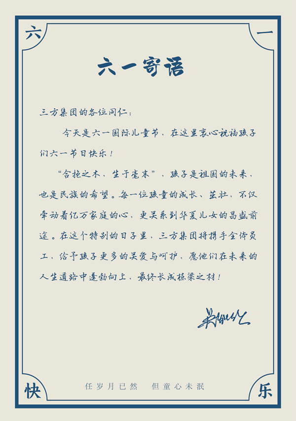 一早,吴董事长已经悄悄地为孩子们撰写了“六一寄语”